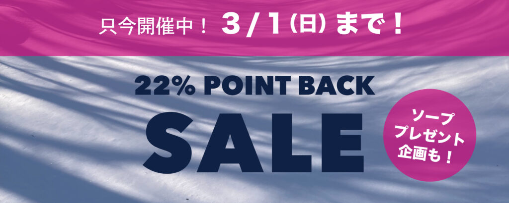 2026年2月20日 by staff 【2/21〜3/1】フプの日 22%ポイントバックセール&ソーププレゼント企画開催中! お待たせいたしました!フプの日22%ポイント還元セールスタートいたしました。今年の特別企画は、1万円以上お買い物された方に、ナルークフェイス&ボディソープを1つプレゼント!私たちスタッフもお気に入りの使い心地をぜひ、皆さんに試してみていただきたい、という思いで企画しました。詳細はこちらをご覧ください! ※ソーププレゼントご希望の方は、プレゼントソープをカートに入れていただく必要がありますのでお忘れなく! in EVENT / INFO / NEWS 0 comments ShareYou may also like【予告】2/21〜3/1 フプの日 22%ポイントバックセール開催します年末年始休業のお知らせ11/15 無印良品旭川花咲店にて出店いたします